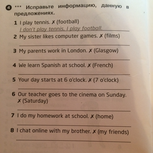5)our teacher doesn't go to the cinema on Sunday, she goes on Saterday.