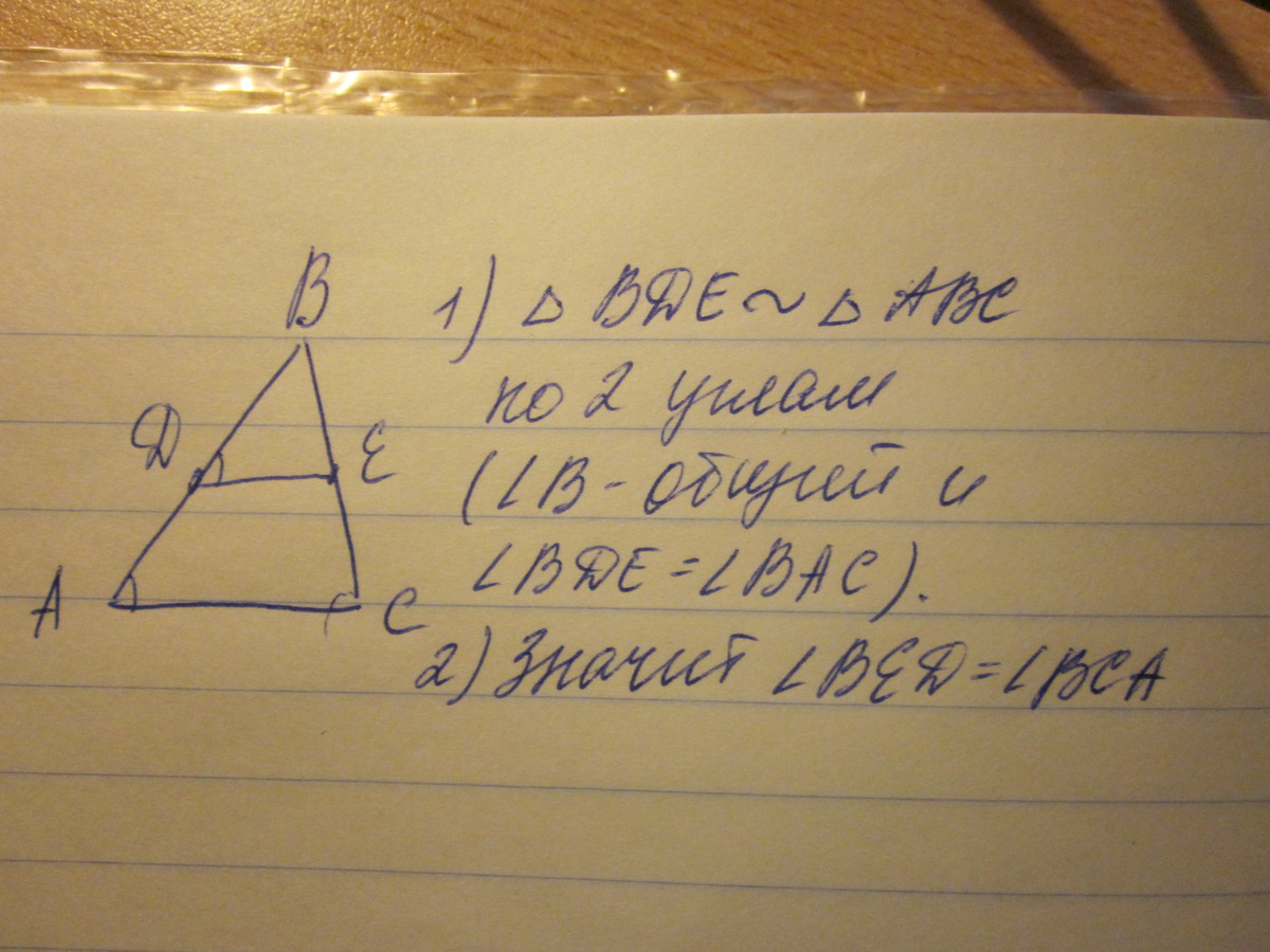 На сторонах АВ и ВС треугольника АВС отмечены точки D и Е соответственно.Докажите что - если угол BDE =углу BCA,то угол BDE = углу BAC
