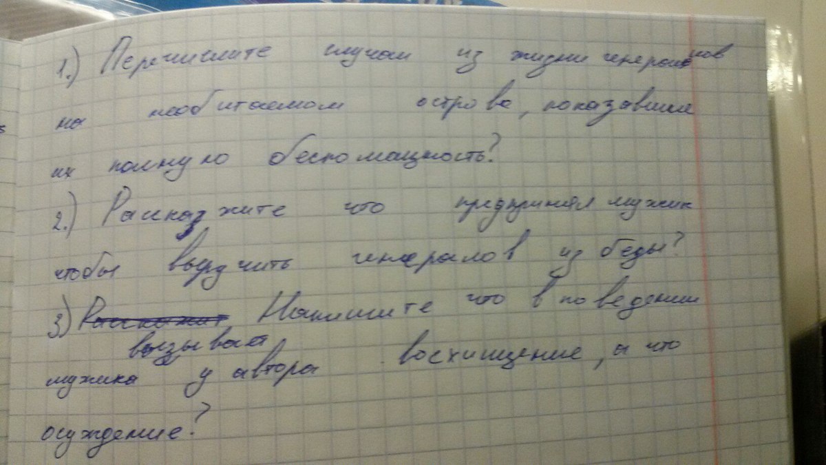 3 Автор восхищается мужиком, его силой и умениям, которые пригодились на острове. Осуждает автор генералов, их глупость и высокомерие. Также автор недоволен и мужиком, который покорно выполняет любые поручения генералов.