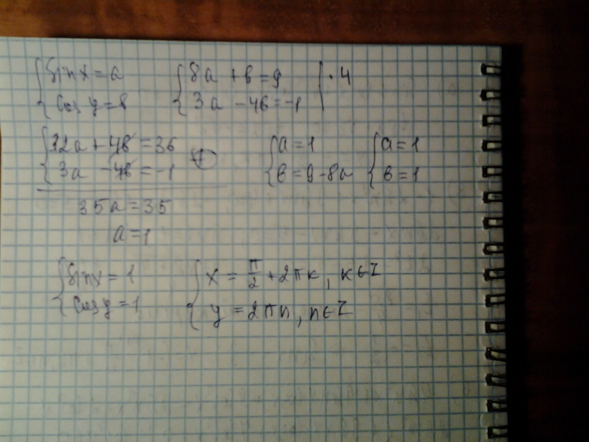 При решении системы использоаана замена переменной, способ сложения. При этом для а и b есть ОДЗ: они по модулю меньше или равны 1.
