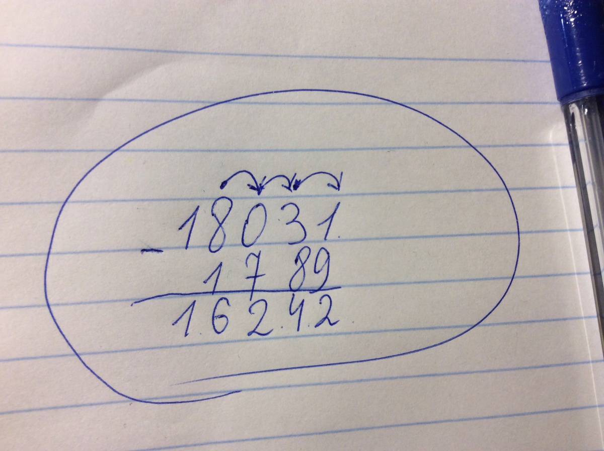 тут съехало. надо 9написать под 1, 8 под 3, 7 под 0, 1 под 8. и отнять. в ответе получится 16242