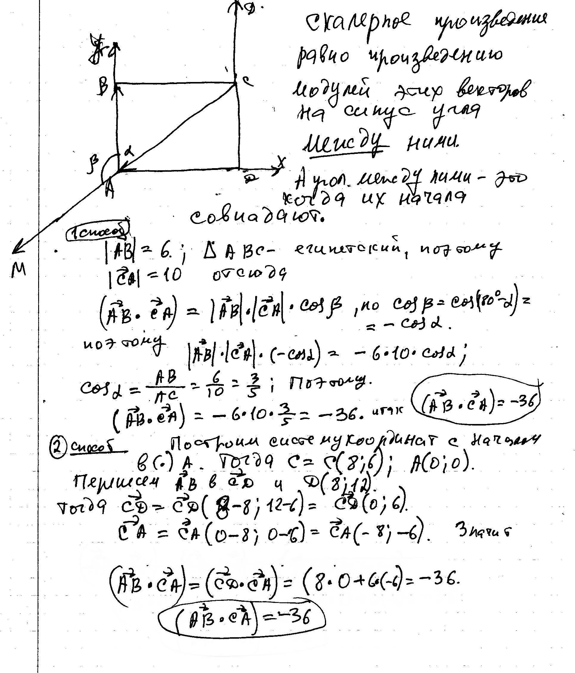 Дан прямоугольник ABCD со сторонами AB=6 и BC=8. Найдите скалярное произведение векторов AB • CA