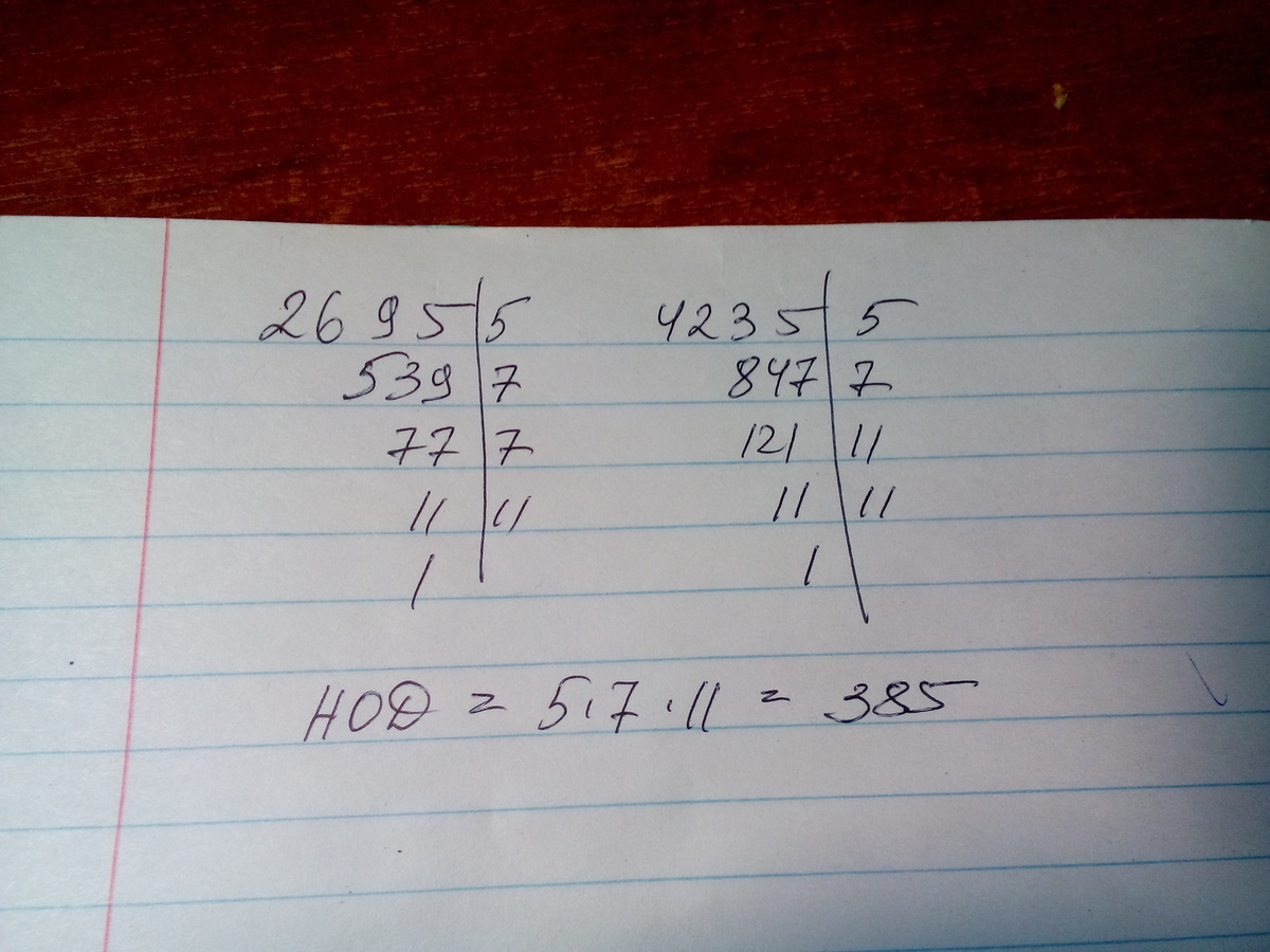 НОД (2695; 4235) = 5 · 7 · 11 = 385