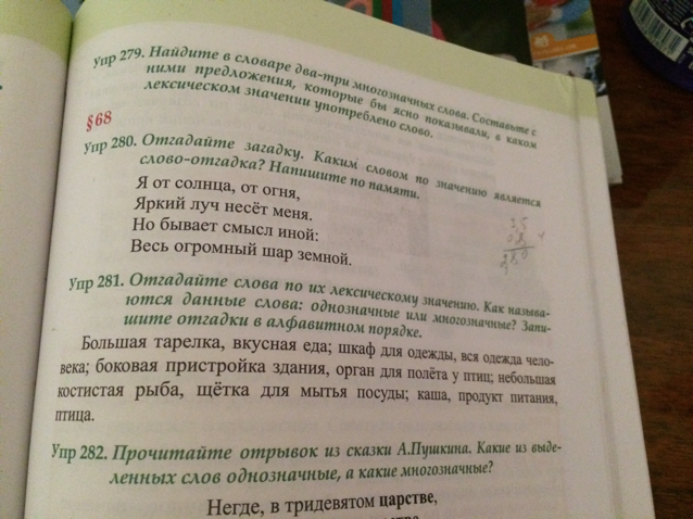 281. Блюдо, гардероб, крыло, ерш, овсянка. По алфавиту: блюдо, гардероб, ерш, крыло, овсянка. - многозначные слова.