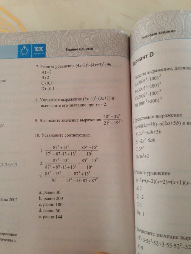 9) (8(36-48+16)/(441-798+361)=(8*4)/4=8