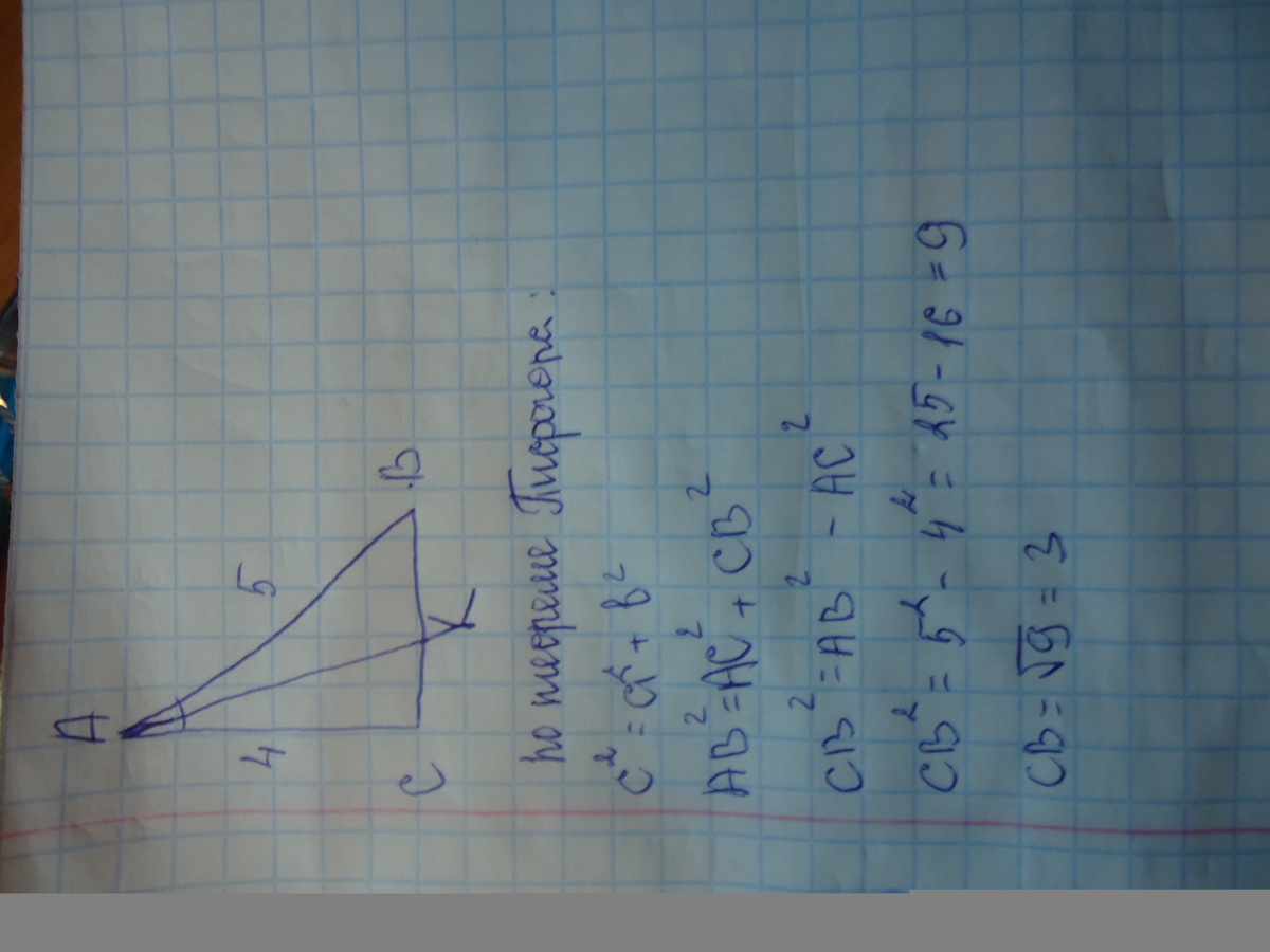 Следует, что СК : КВ как 4:5 из этого следует, что по теореме Пифогора АК2 = АС2 + СК2
