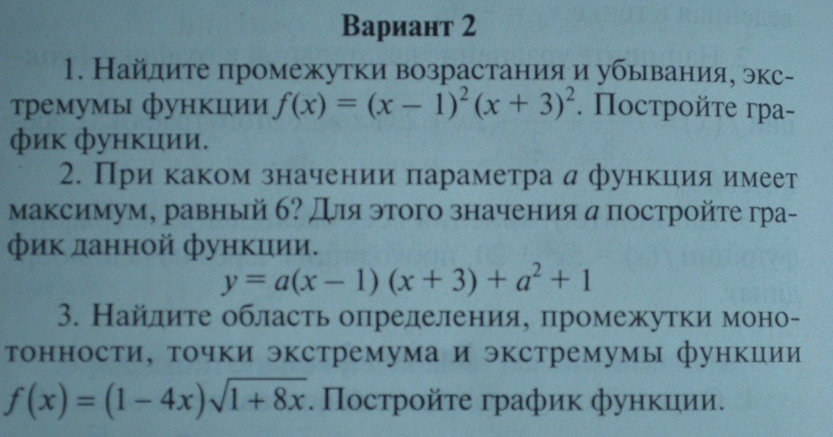 Применение производной для исследования функций на монотонность и экстремумы. Графики функции.