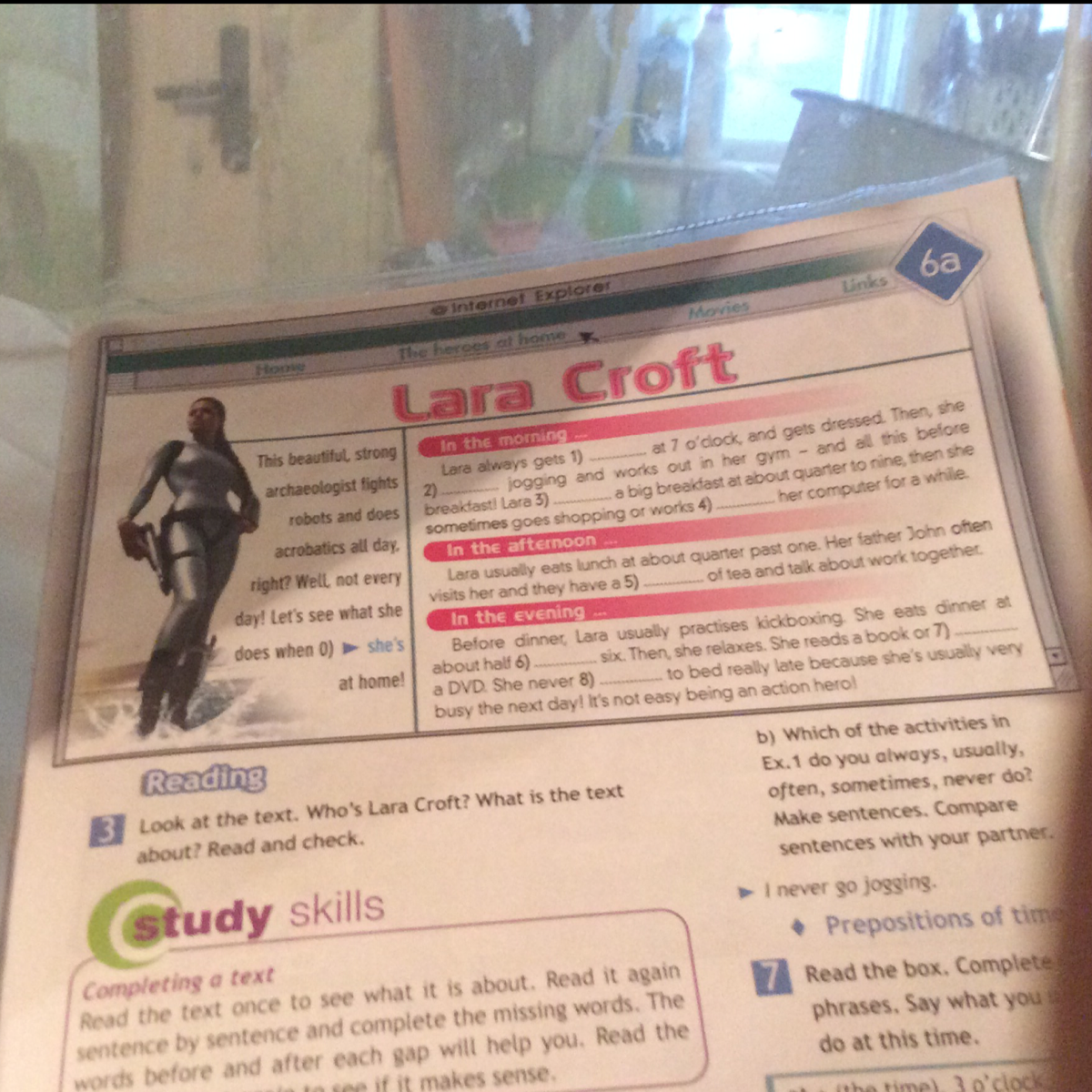 1)up 2)is 3)has 4)on 5)cup 6)past 7)watches 8)goes
