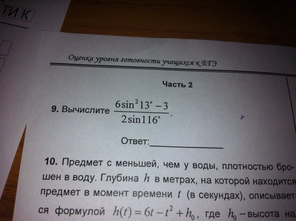 (6sin² 13° - 3) / (2sin116°) = [3*(2sin² 13° - 1)] / [2*sin(90° + 26°)] =