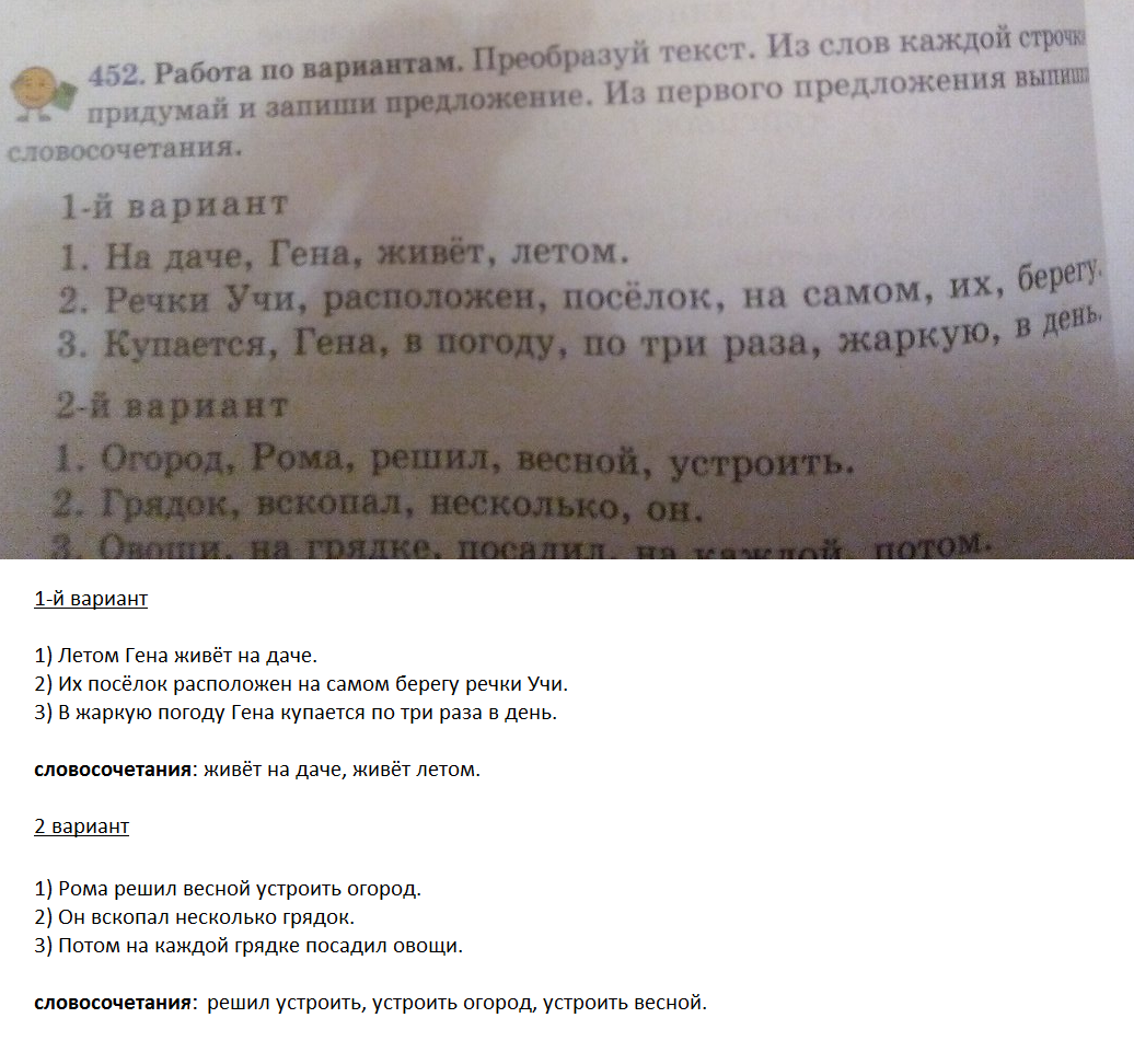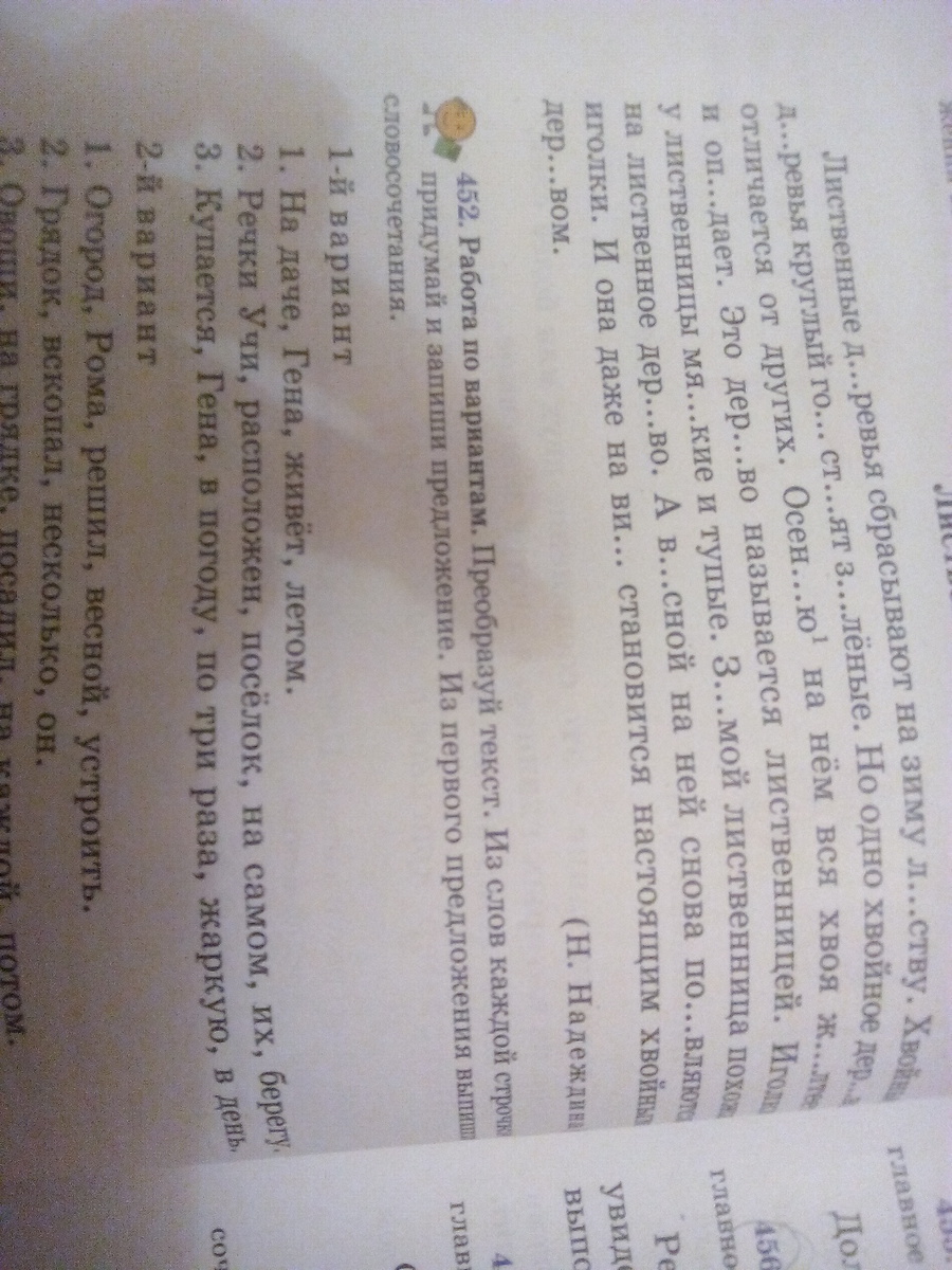 преобразуй текст.Из слов каждой строчки придумай и запиши предложение.Из первого предложения выпиши словочетания