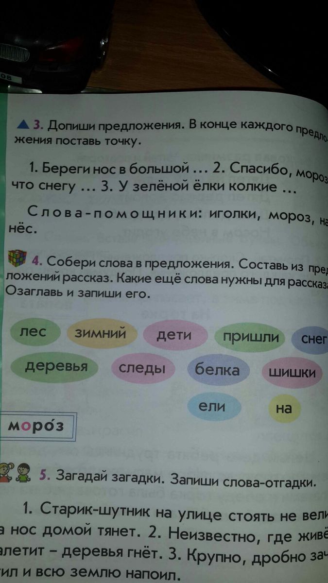 В зимний лес пришли дети. На снегу были следы белки. Она сидела на дереве и ела шишки.