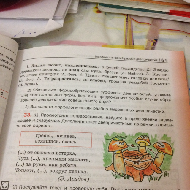 Спишите предложения. Подчеркните подлежащие и сказуемые, задайте от сказуемых вопросы к деепричастиям как членам предложения.