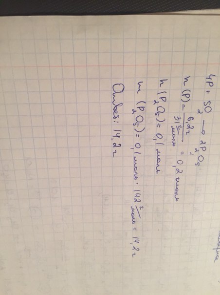 Задача. Какая масса оксида фосфора(V) образуется при полном сгорании 6,2 граммов фосфора? 4Р + 5О2 = 2Р2О5. Ответ запишите с точностью до десятых! * ПОМОГИТЕ ПОЖАЛУЙСТА