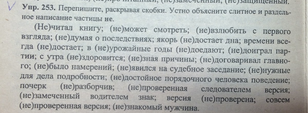 Не читал книгу, не может смотреть, невзлюбить с первого взгляда, не думая о последствиях, якорь не достает дна, времени всегда недостает, в неурожайные годы недоедают, не доиграл партии, с утра нездоровится, не зная причины, недоговаривал главного, не было намерений, не явился на судебное заседание, ненужные для дела подробности, недостойное порядочного человека поведение, почерк неразборчив, не проверенная следователем версия, не замеченный водителем знак, версия не проверена, совсем не проверенная версия, незнакомый мужчина.