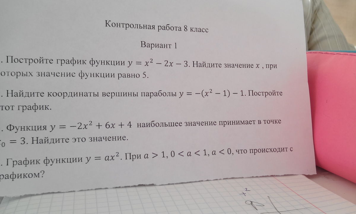 здесь парабола у=-x^2+1-1, y=-x^2; вершина в начале к-т, ветви вниз; точки для построения: (1;-1); (2;-4); слева: (-1;-1); (-2;-4)