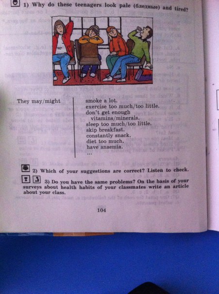 По 3) Задание: У вас есть такие же проблемы? На базе ваших обзоров привычек здоровья ваших одноклассников, напишите статью о Вашем классе. Мини-сочинение) скорее всего, это надо делать , отталкиваясь от 1) Задание: почему эти подростки выглядят так бледно и устало?