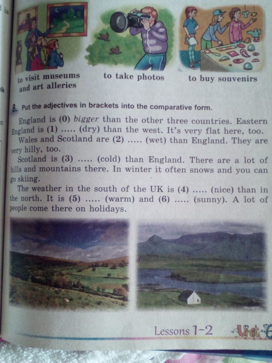 1) drier 2)wetter 3)colder 4)nicer 5)warmer 6)sunnier