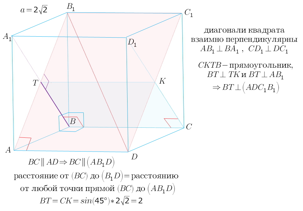 расстояние между скрещивающимися прямыми = длине их общего перпендикуляра