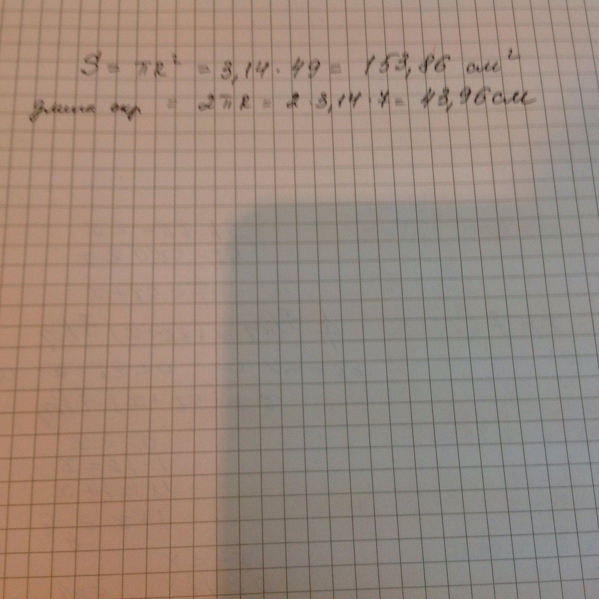 площадь круга s= pi*r^{2} =3.14*49=153.86