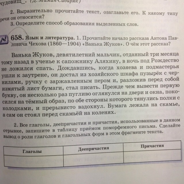 Русский язык, упражнение 658, задание 2, Все глаголы, деепричастия и причастия, использованные в данном отрывке, запишите в таблицу приёмом по морфемного письма. ВОТ ЭТО ЗАДАНИЕ НОМЕР 2!!! Буду очень рад если кто нибудь поможет мне! Текст во вложениях. Заранее большое СПАСИБО!)))