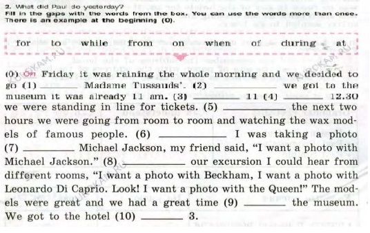 № 2: on Friday ... to Madame ... when we got ... from 11 to 12.30 ... for the next ... when I was ... of Michael ... During our ... at the museum ... at 3.