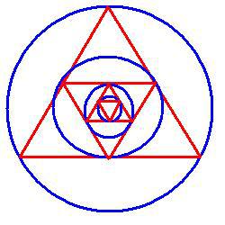 В окружность, радиусом 5 см, вписан правильный треугольник, в этот треугольник вписана окружность, в эту окружность вписан правильный треугольник и т.д....