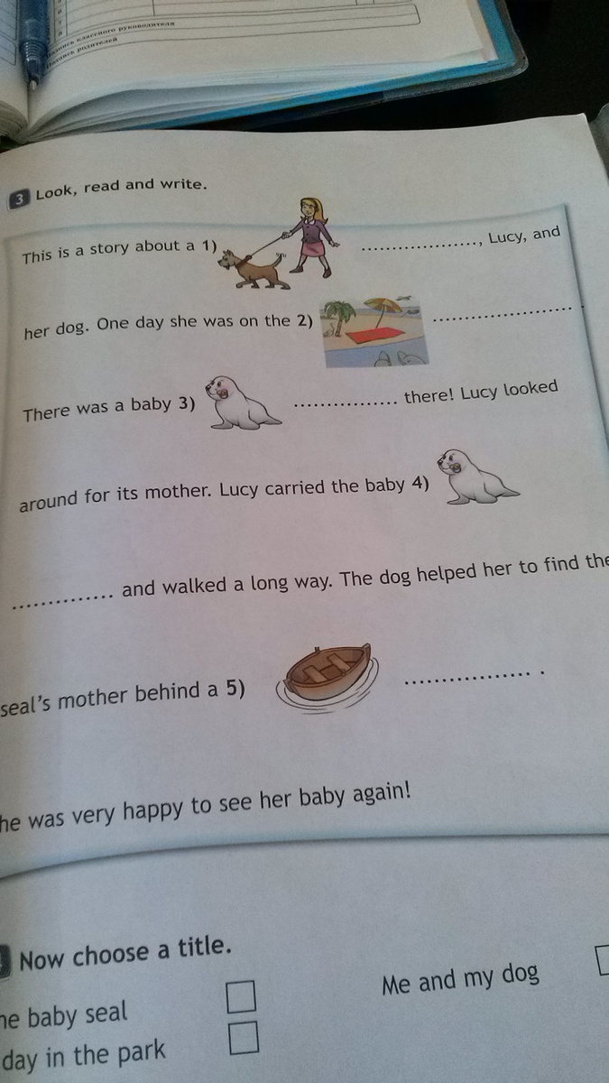 1. girl; 2. beach; 3. seal; 4. seal; 5. boat