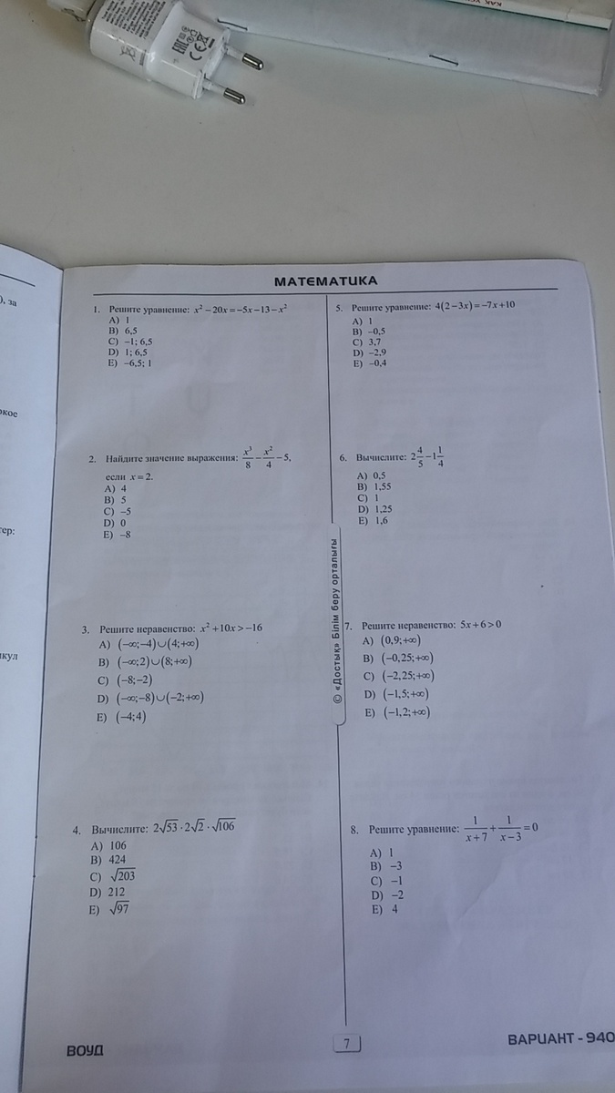 1) Д; 2)С; 3)Д; 4)В; 5)Е; 6)В; 7)Е; 8)Д