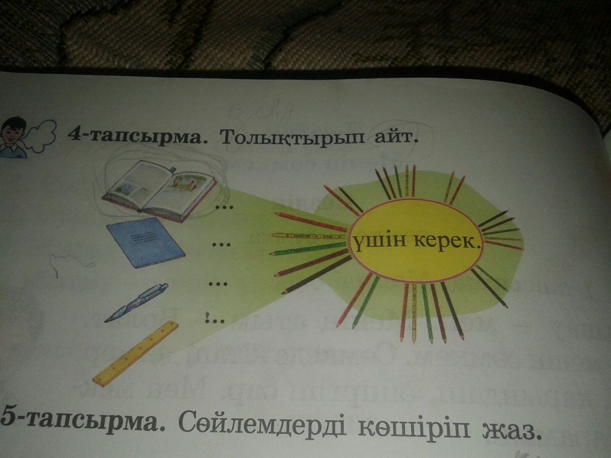 Китап оку ушин керек.Даптер жазу ушин керек. Калам жазу ушин керек. Сызгыш сызу ушин керек