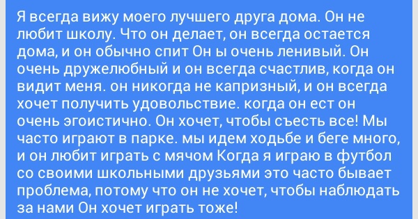 Я всегда вижу моего лучшего друга дома. ему не нравится школа. Что он делает, он всегда остается дома, и он обычно спит Он очень ленив.