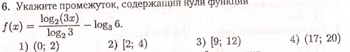 укажите промежуток содержащий нули функции f (x) log2 (3x)/ log2 3-log3 6