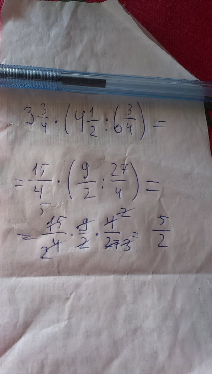 три целые три четвёртые умножить на (четыре целые одна вторая разделить на шесть целых три четвёртые)