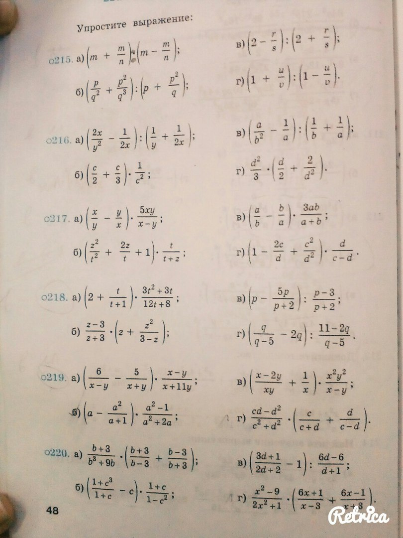 215. а) (mn+m)/n)*(n/(mn-m)= (m(n+1)*n)/mn(n-1)=(n+1)/(n-1)