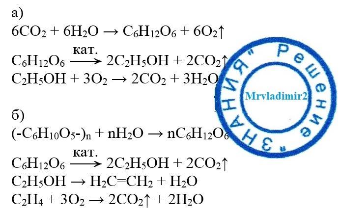 а) CO2→C6H12O6→(-C6H10O5)n→C2H5OH→CO2