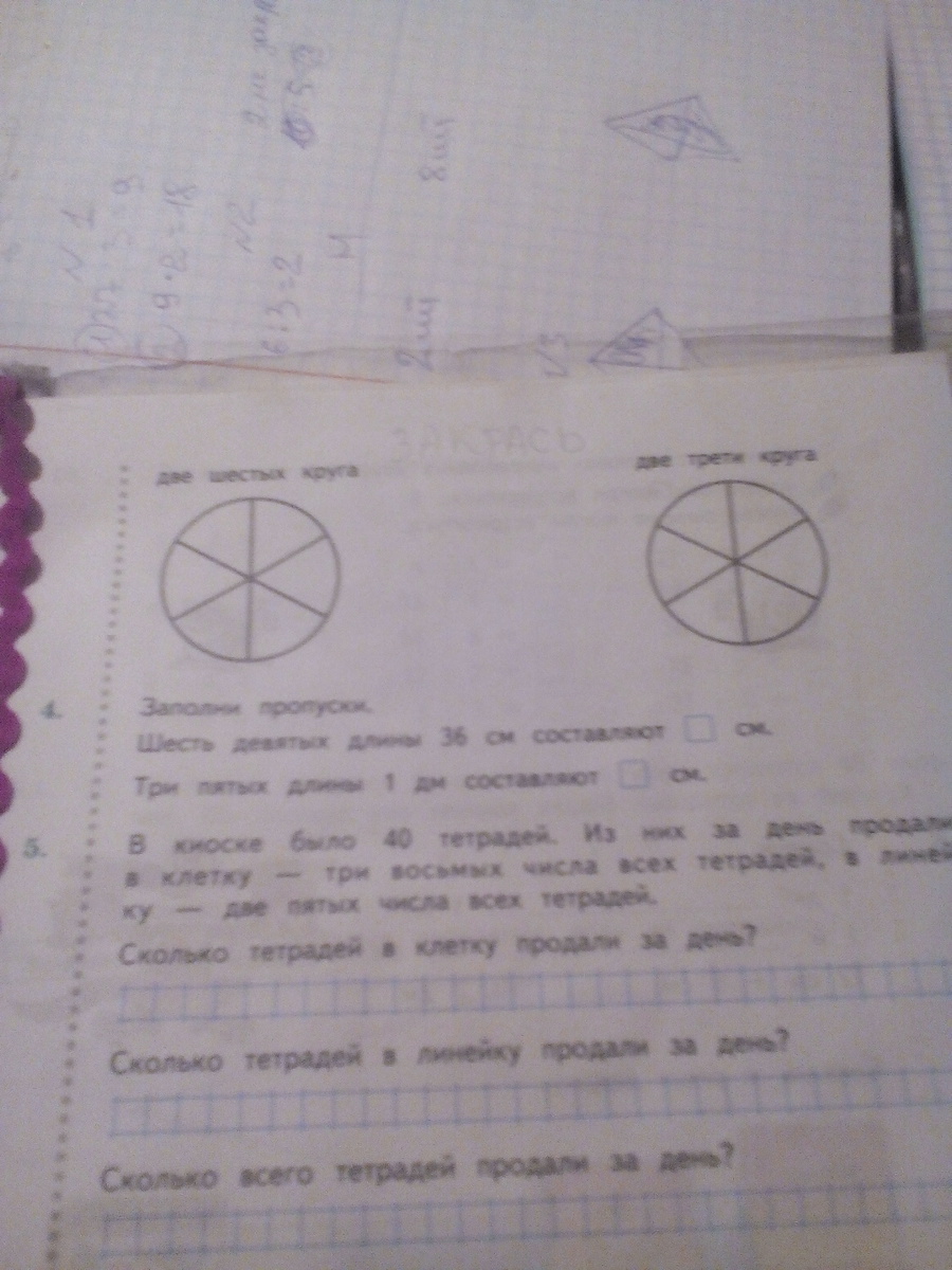 закрась две шестых круга. две трети круга