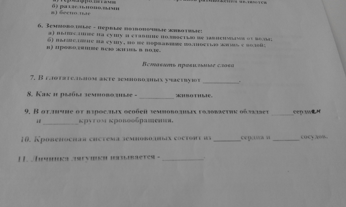 6.б)вышедшие на сушу,но не порвавшие с водой