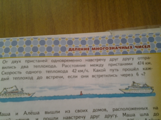 42*6=252 км прошёл один теплоход.