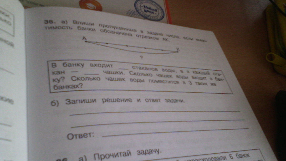 в банку входит 5 стаканов воды ,а в стакан входит 1 чашка воды Значит в банке 5 чашек с водою В трёх банках будет 5*3=15 чашек с водою ВРОДЕ ТАК я понял