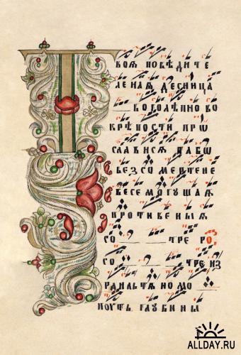 Буква. В начале должна быть обязательно буква, БОЛЬШАЯ, красивая, необычная. С неё должен начинаться весь текст, который лучше начинать с середины, так как над ним неплохо было бы нарисовать небольшую иллюстрацию к книге, либо же просто красивые завитушки, растения, верхушки церквей, замков (всё на твой выбор.)