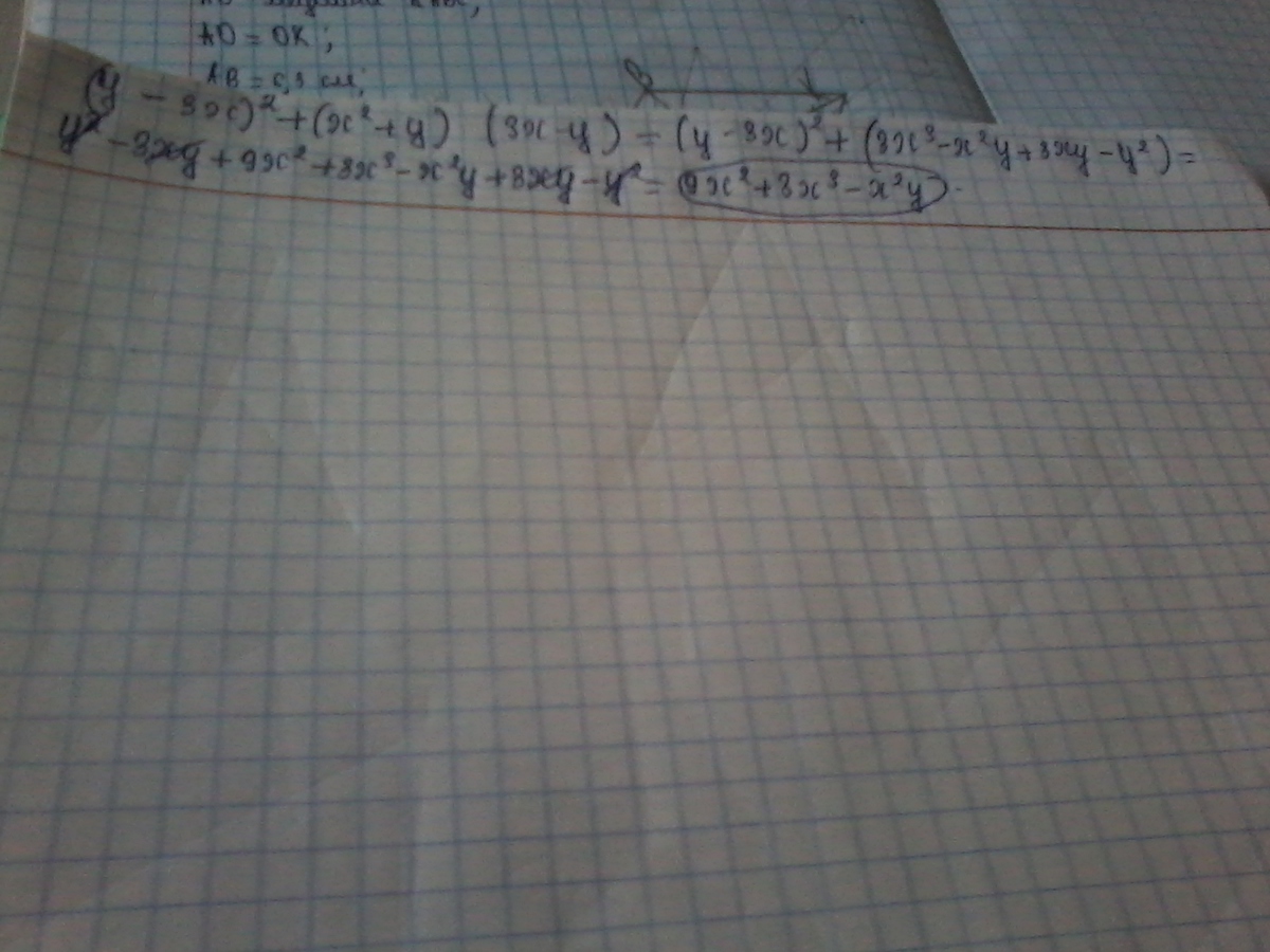 Одним словом, сначала умножаем потом прибавляем, но перед тем как прибавить вспоминаем : (у-3х)^2 это формула, которая равняется у^2-3ху+9х^2.Потом после всего этого сокращаем.
