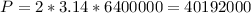 Соответственно, длина экватора в нашем случае ( r = 6400000 и pi = 3.14):