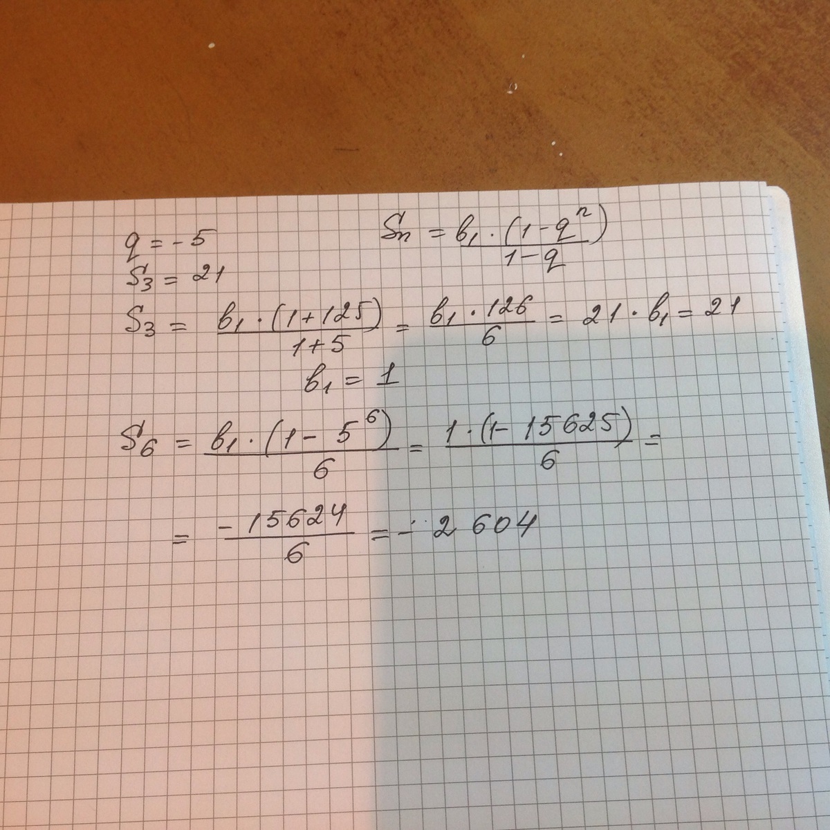 Знаменатель геометрической прогрессии равен -5, а сумма первых трех членов равна - 21. Найдите сумму первых шести членов этой прогрессии. Помогите