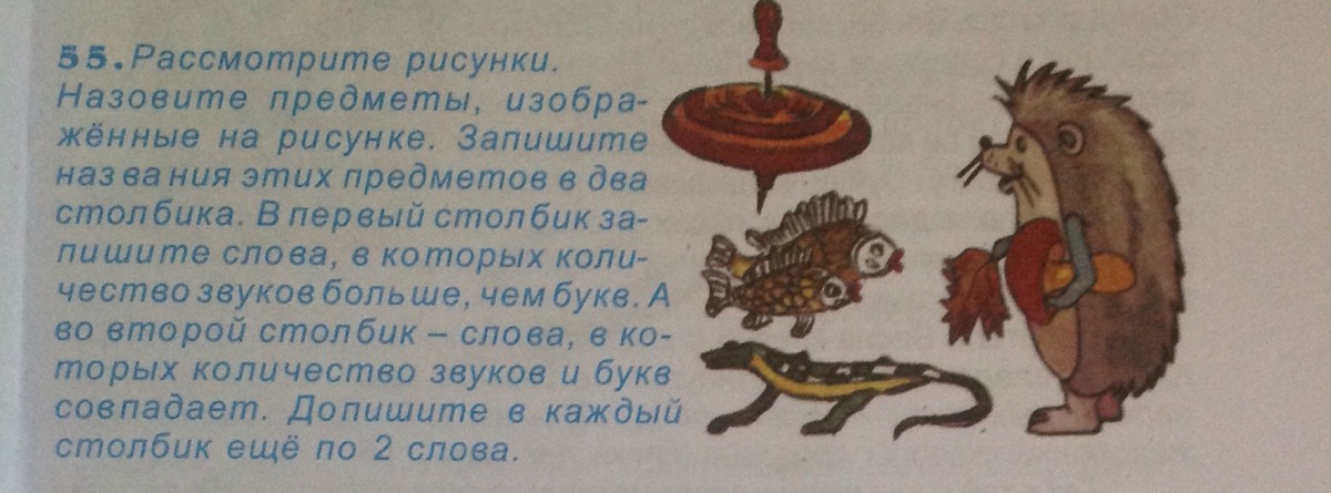 1 столбик: юла, ёж, ящерица, яблоко, пень