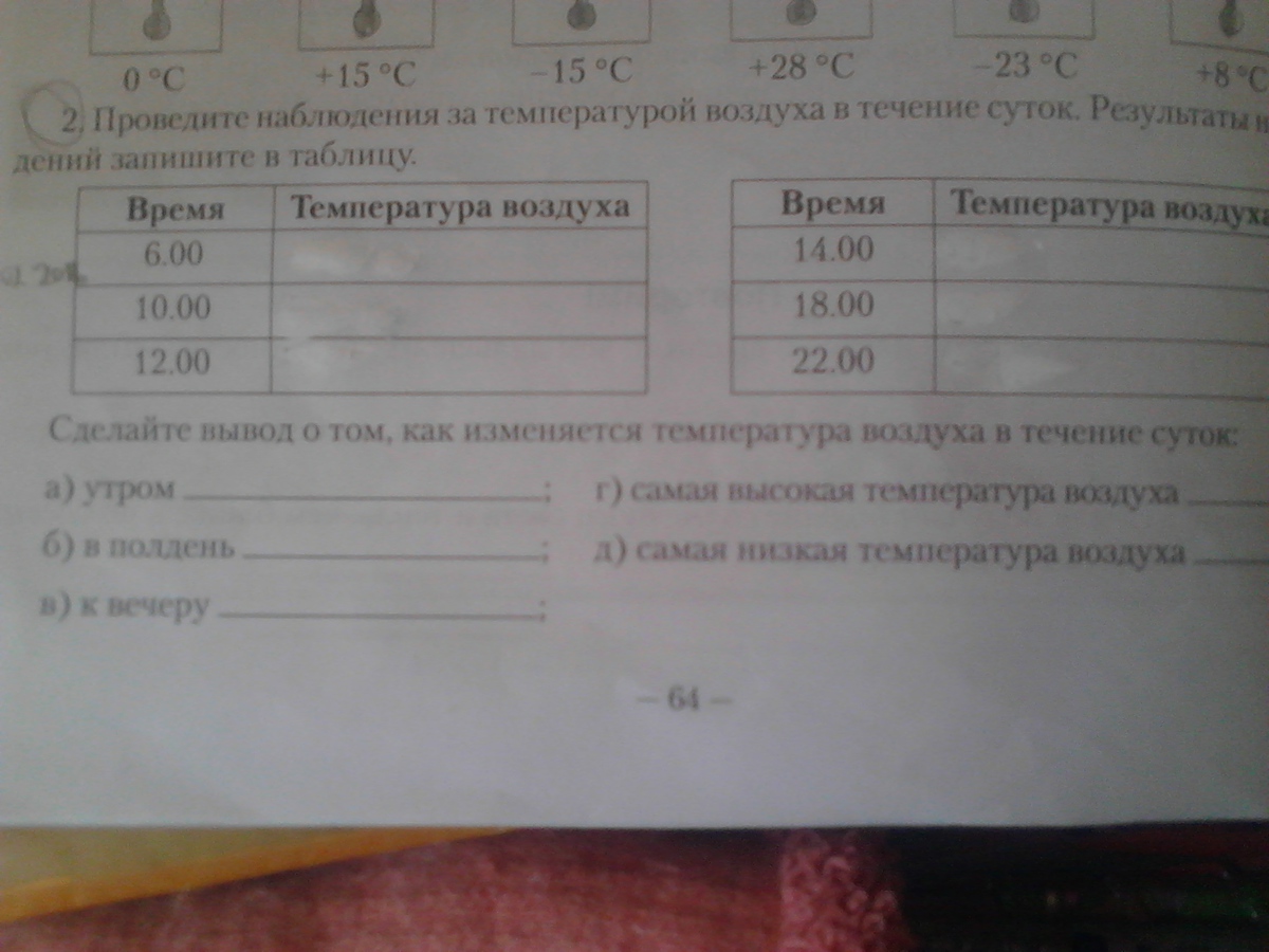 утром прохладно в полдень тепло к вечеру холодно сам выс темп в полдень сам низ к вечеру