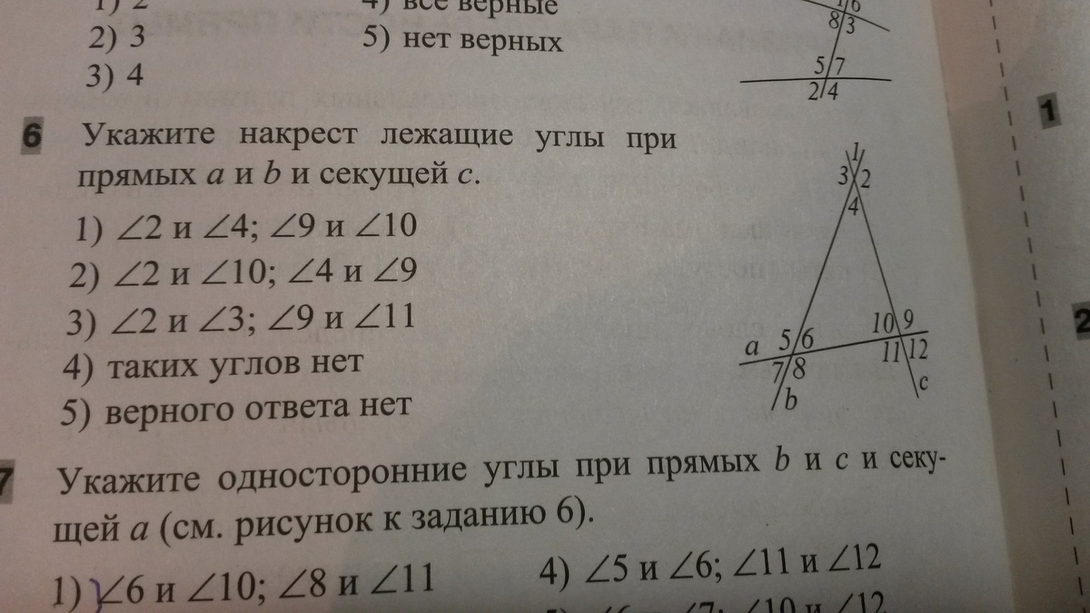 укажите накрест лежащие углы при прямых a и b и секущей с