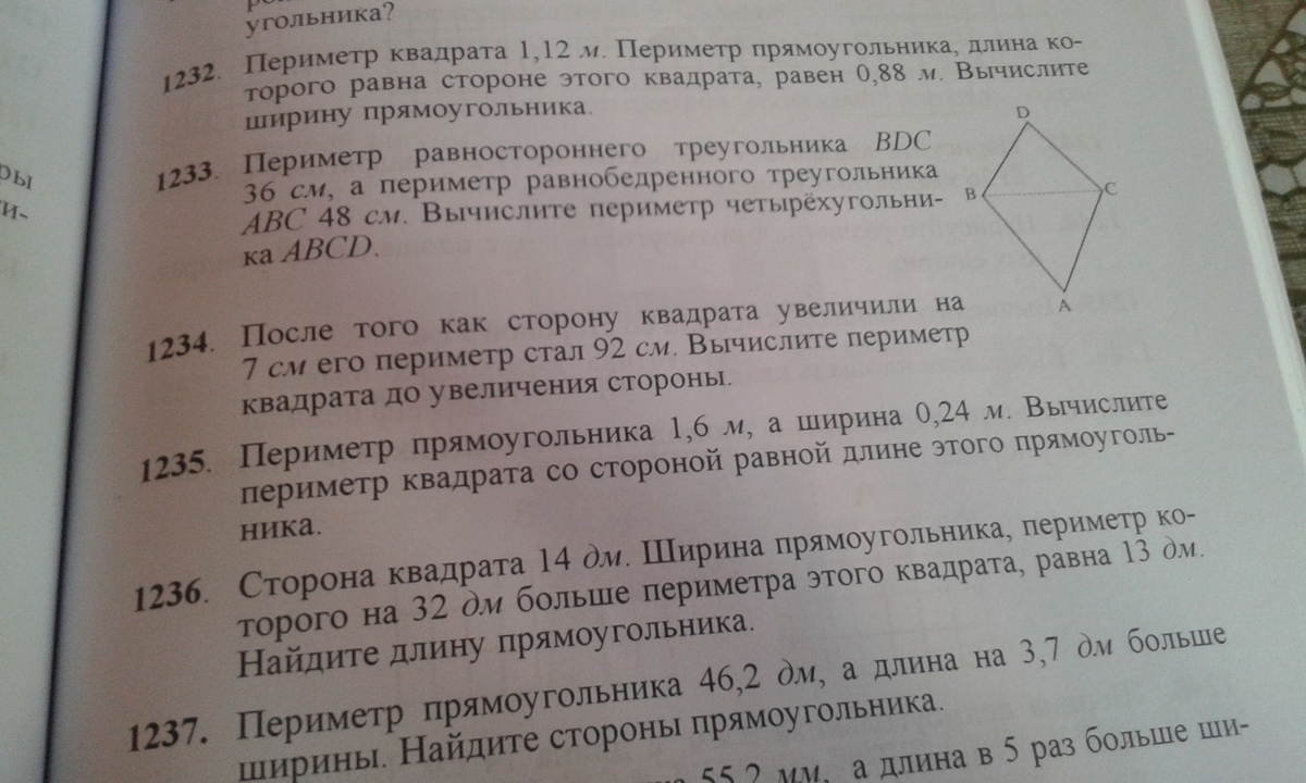 1234. 7*4 = 28 (на столько увеличился периметр, 92-28=64 (предыдущий периметр