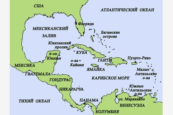 найдите на карте карибское море. какие опасные атмосферные явления происходят в этом регионе земли