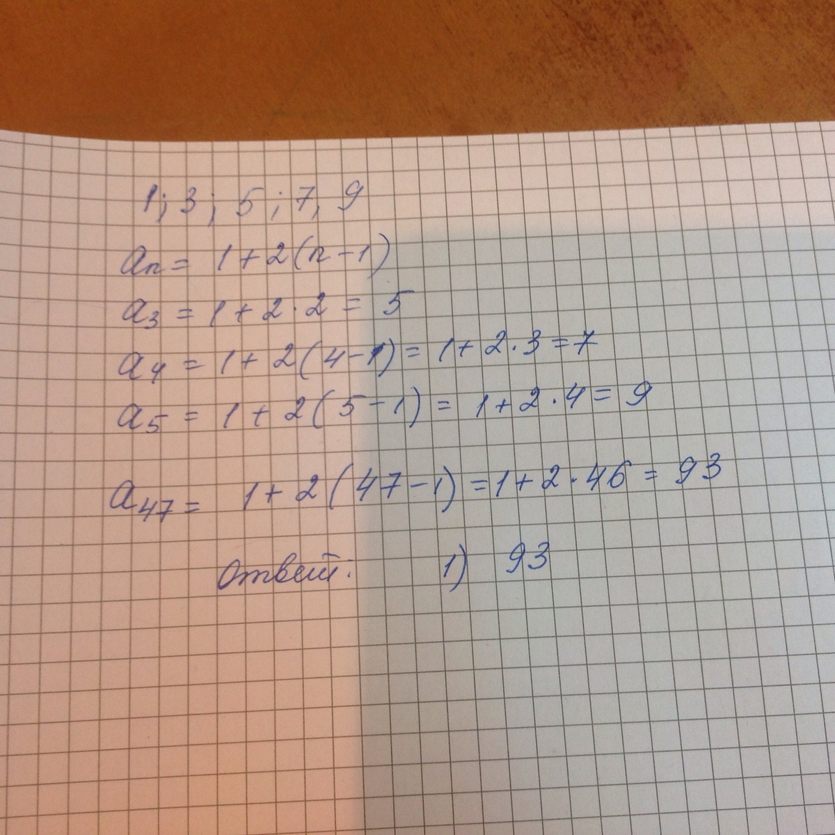 Выпишите три следующих члена последовательности (уn) : 1; 3; … если известно, что она является арифметической прогрессией. Найдите 47-й член этой