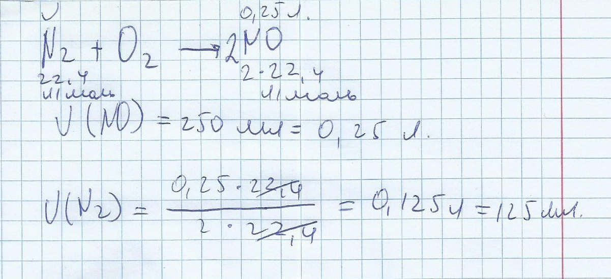 Определите объем азота N2, необходимого для взаимодействия с кислородом, если в результате реакции получается 250мл оксида азота (ll).