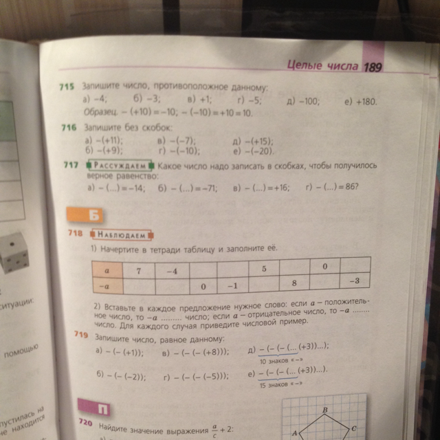 716) а) -11 б) -9 в) 7 г) 10 д) -15 е) 20